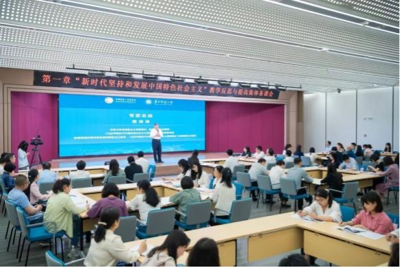 【通讯员:欧阳泓杰】 5月10日,“习近平新时代中国特色社会主义思想概论”课第一章“新时代坚持和发展中国特色社会主义”教学反思与提高集体备课会在我校举行。来自我校和武汉大学、华中科技大学、武汉理工大学等湖北131所高校的思政课教师以“线上+线下”方式参会,全国高校思政课教师通过教育部“云上大练兵”备课磨课平台在线观摩。