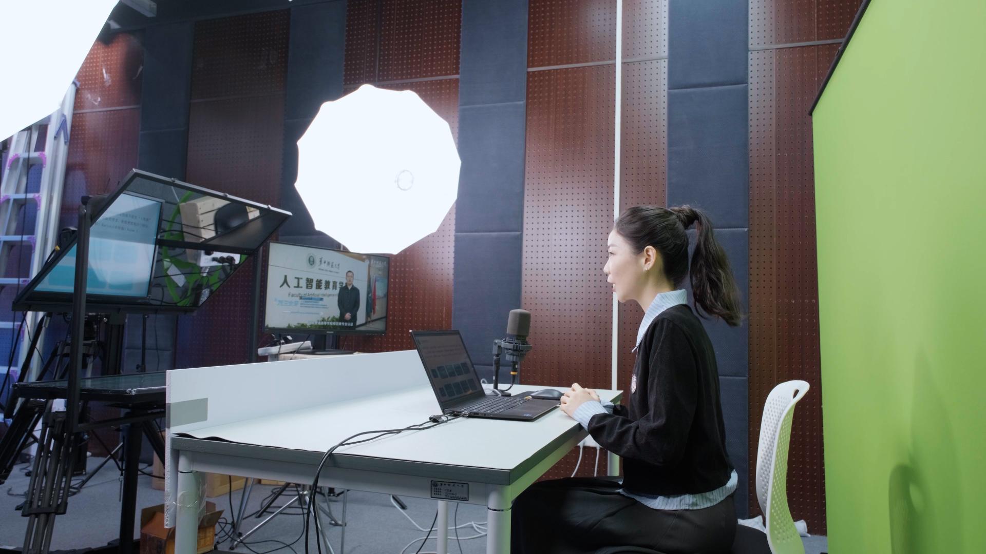 (2)课程直播制作区:绿幕/喷绘背景板、22寸提词器,4K摄像机。
