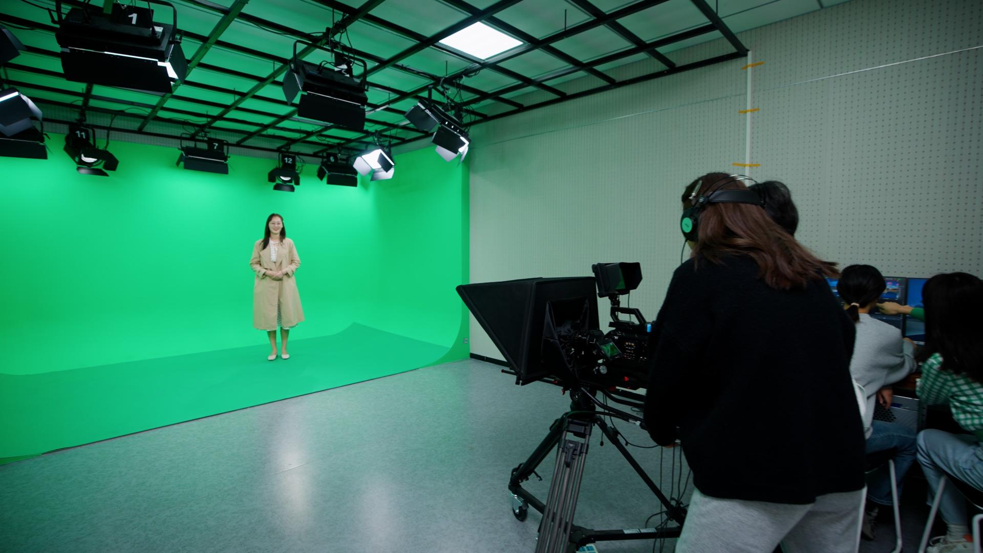 (3)三维虚拟绿箱录制区:影视级抠像绿箱(含地胶)、22寸提词器,4K摄像机,励得数码U-Studio-Plus-1UHD三维虚拟制作系统。