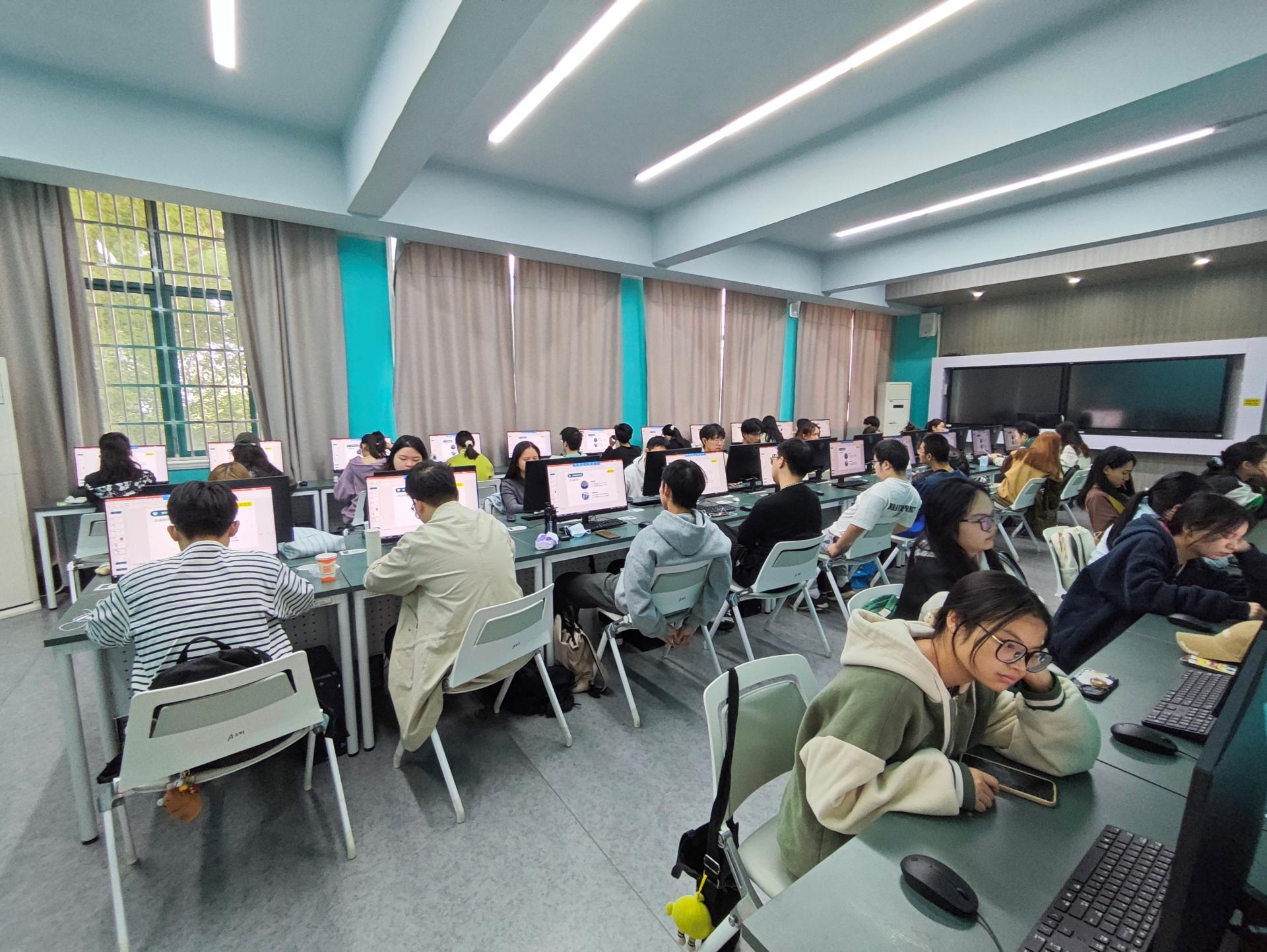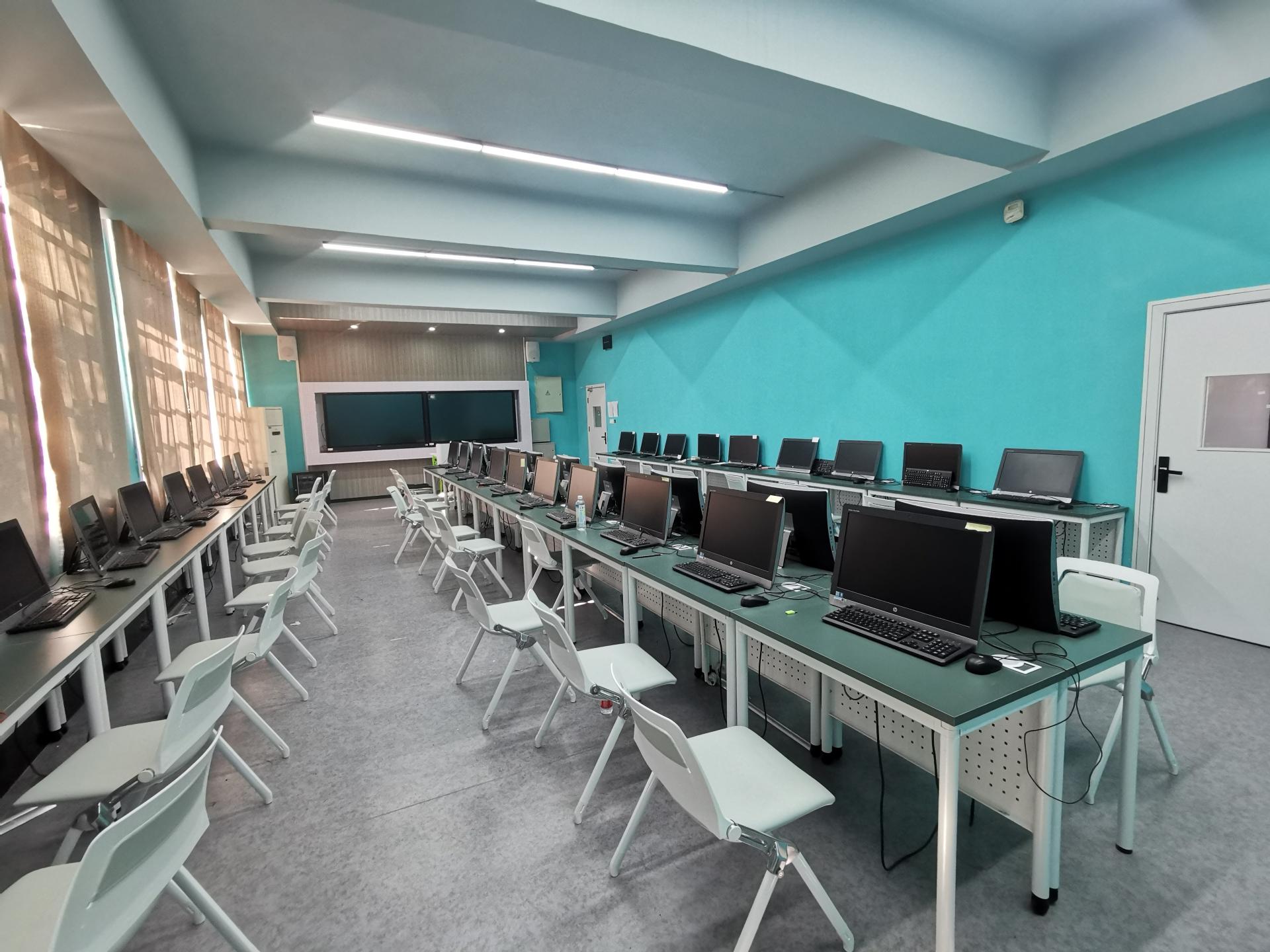 2、主要设备及台套数:惠普台式计算机41台(含教师机)、75寸触控大屏2个、扩音系统1套。