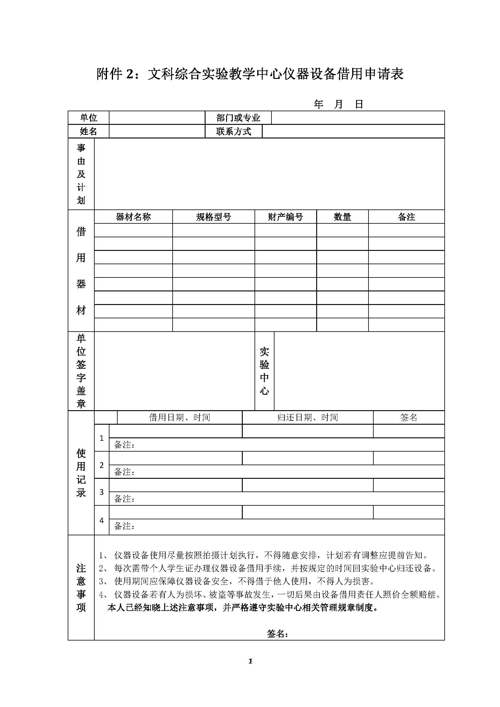 1、各实验室工作人员应及时记录实验室的仪器设备借用状况,学期末将记录归档备查。