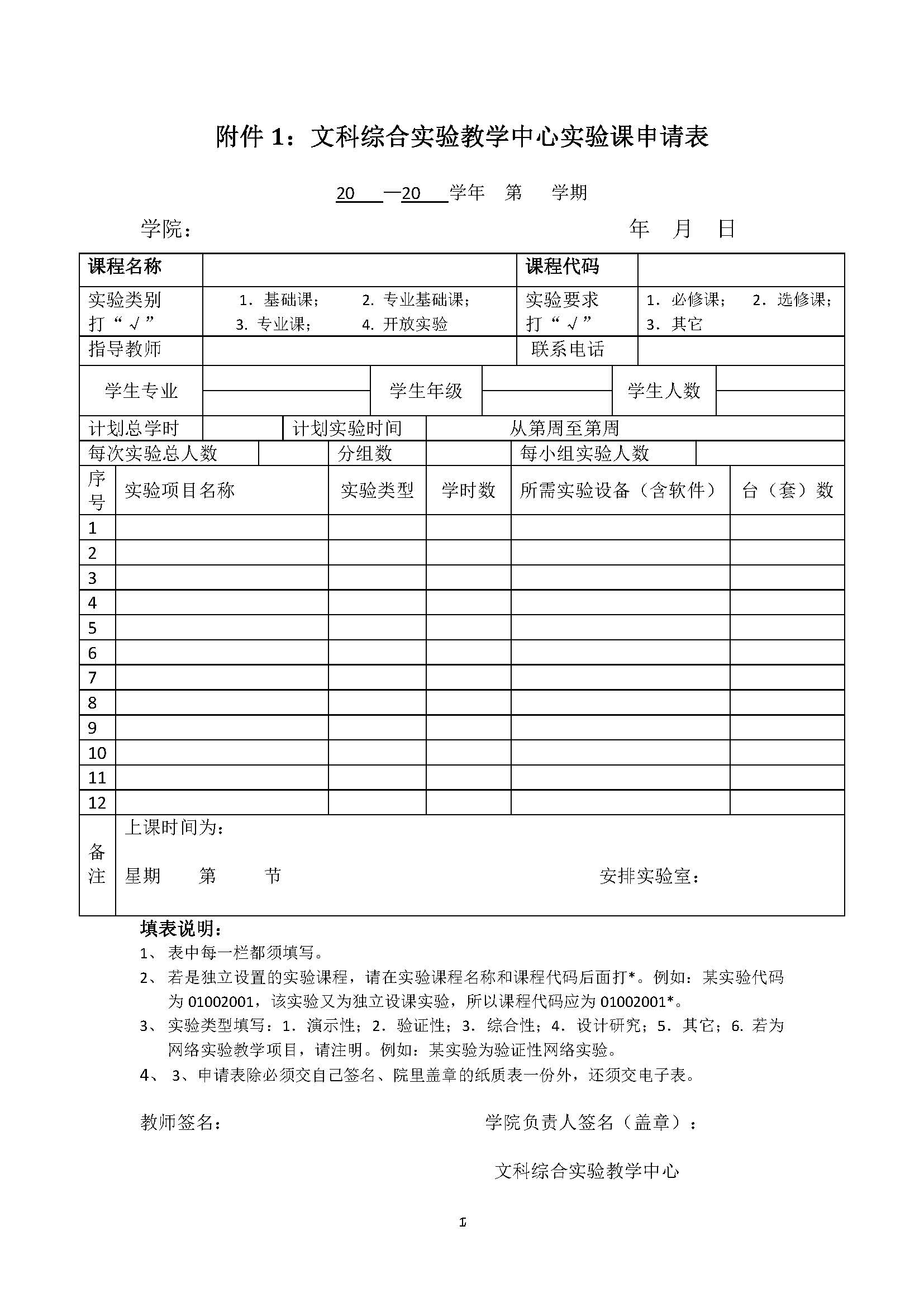 5、每间实验室每学期应有实验课程安排表,学期末将实验课程安排表存档。